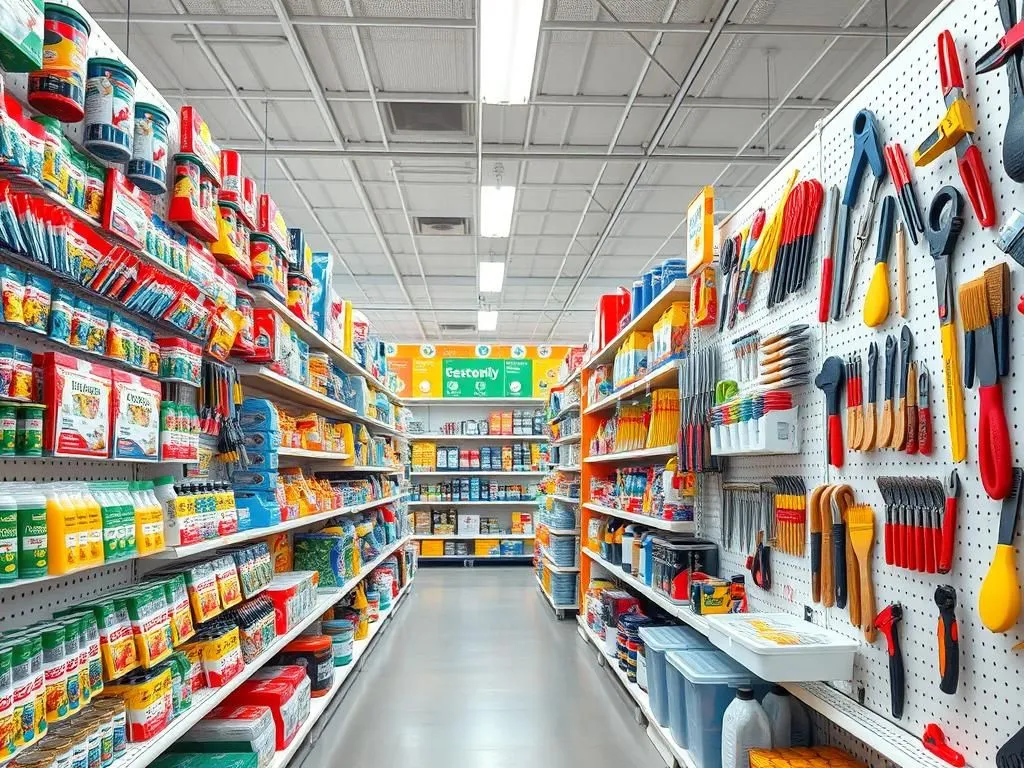 This display perfectly captures the essence of what these retailers offer: a vast collection of items, neatly organized, waiting for a purpose in someone's home. From everyday essentials to specialty tools, these stores are designed to inspire and equip you for your next project.